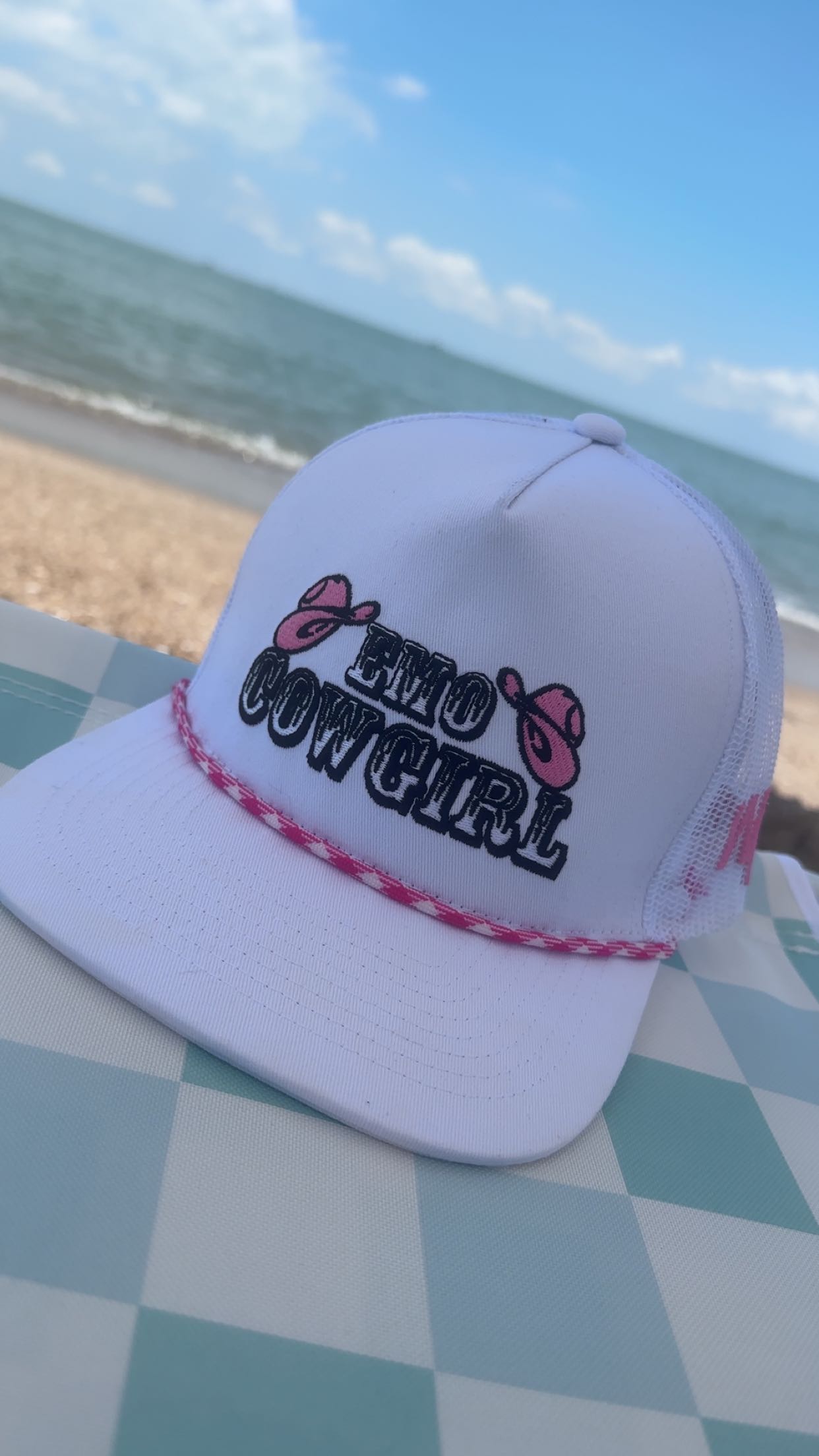 Saddle up and show off your unique style with our "EMO COWGIRL" trucker hat! Perfect for those who love to blend a little bit of country with a dash of alternative edge. Whether you're heading to a music festival, a beach getaway, or just want to make a statement, this hat is sure to turn heads. The classic trucker design ensures breathability and a comfortable fit with an adjustable snapback.