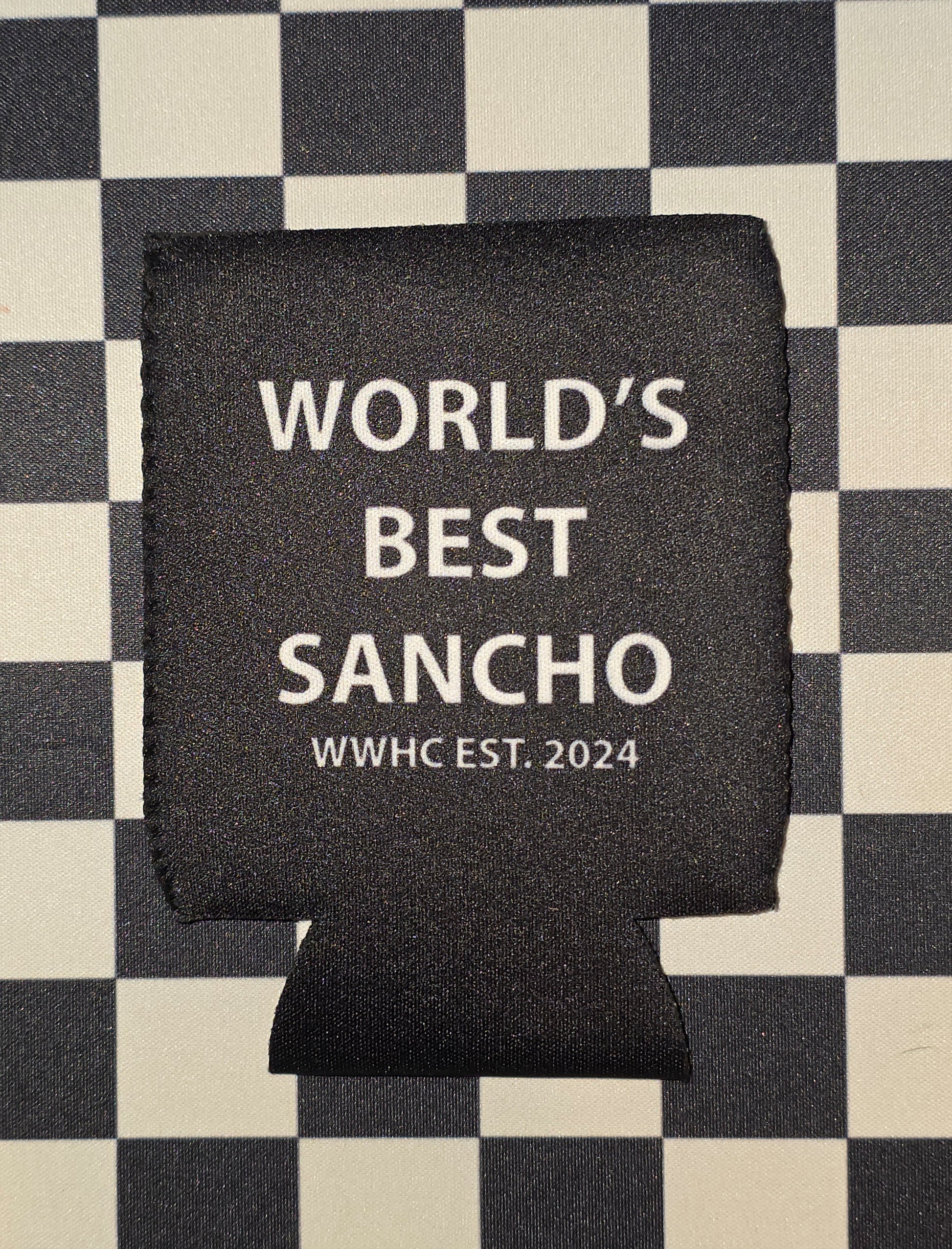 Know someone who's the "World's Best Sancho"? Then this koozie is a must-have! This black can cooler features the bold text on one side, along with "WWHC EST. 2024". The other side displays the cool "Wild Wolf Hat Co." logo, complete with a howling wolf and the year it all started, 2024. Grab this koozie and keep your drinks icy cold in memorable fashion!